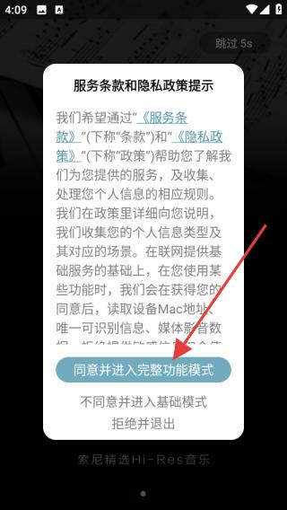 1、啟動索尼精選APP,進入前閱讀服務(wù)條款與隱私政策提示,點擊同意并進入即可。