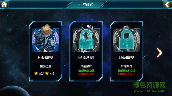 從初始的F級聯(lián)賽作為起點,一路上提升等級和實力,可以解鎖更多級別的聯(lián)賽。每個級別的聯(lián)賽都擁有4個賽事,在每個賽事中都有不同的賽事目標(biāo),若干小隊為了共同的目標(biāo)爭取唯一的冠軍位置。
