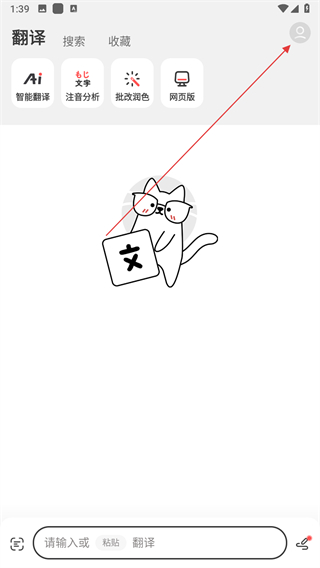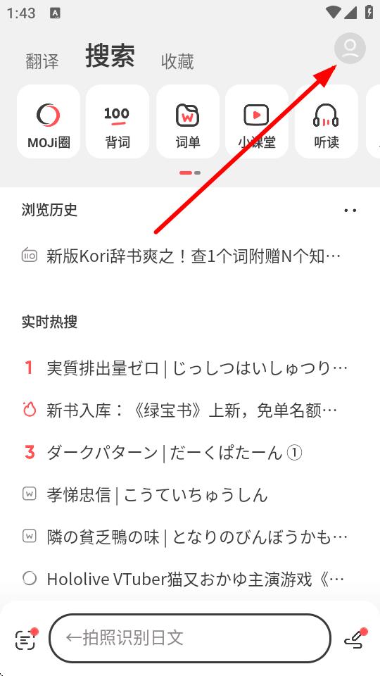 1、打開中日辭典app,點(diǎn)擊右上角的頭像圖標(biāo)。