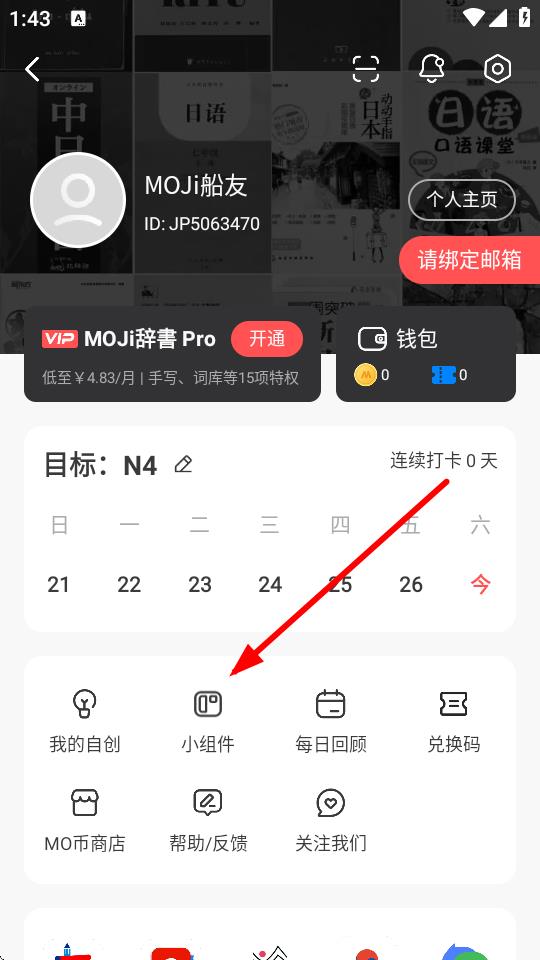 2、在個人的頁面,需要點(diǎn)擊小組件按鈕,進(jìn)入桌面小組件界面。