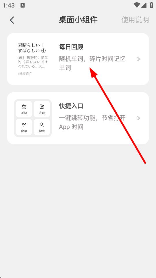 3、在桌面小組件的界面,點(diǎn)擊每日回顧,進(jìn)入樣式設(shè)置的頁面。