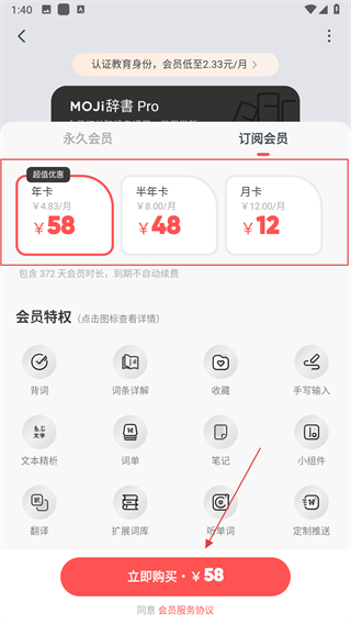 3、進(jìn)入會員訂閱頁面,選擇好會員類型后,點(diǎn)擊下方對應(yīng)的立即購買按鈕。