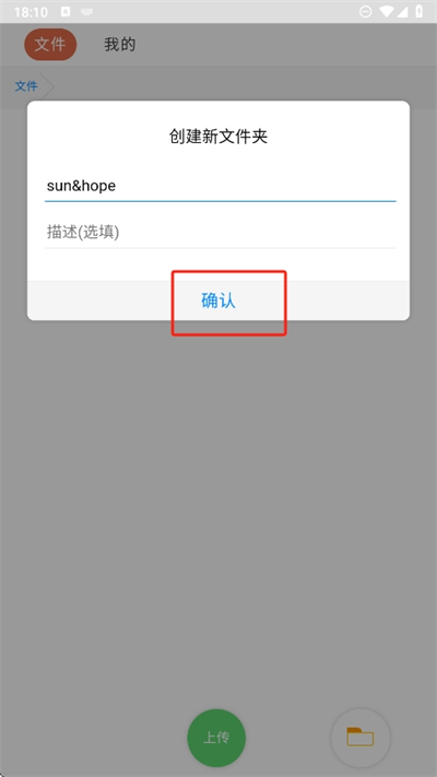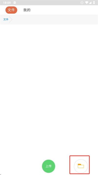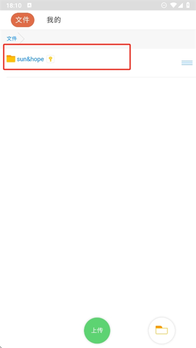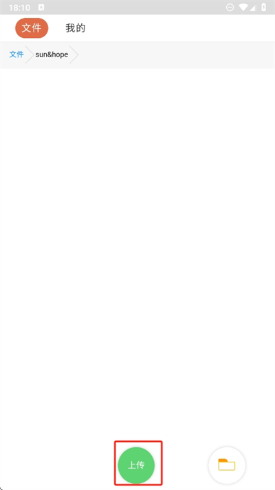 4、進入文件夾后點擊上傳就可以上傳手機中的多種格式的文件,幫助你們能夠保存所有重要的東西。