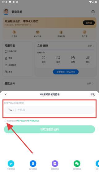 3、點(diǎn)擊后彈出輸入框,用戶需要輸入手機(jī)號(hào)并勾選相關(guān)政策,然后獲取驗(yàn)證碼。