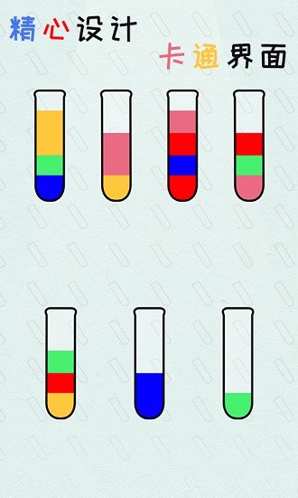 色彩之旅是一款益智類的手機(jī)游戲,游戲中你需要對試管內(nèi)的不同顏色的水進(jìn)行分類,將它們按照顏色裝進(jìn)不同的試管中,游戲非常簡單,只需要動動手指頭就可以了,非常適合你在沒事做的時候玩一玩,或者給自己家的小孩玩,讓他學(xué)會顏色分類,你還在等什么呢,快來下載體驗(yàn)吧!
