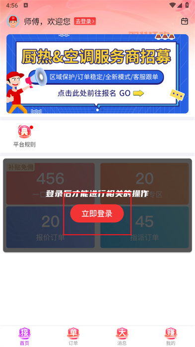 3.師傅通過本軟件可以實現(xiàn)接單、處理訂單、訂單結(jié)算和主動體現(xiàn)等功能。