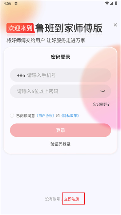 3、在登陸之前需要進行【立即注冊】按鈕的點擊,以進行賬號的注冊;