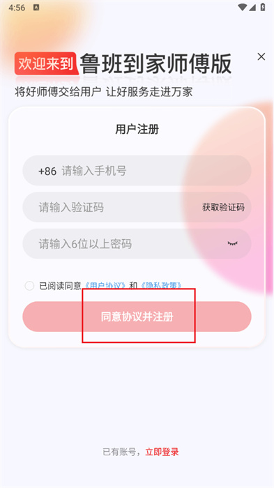 4、輸入手機號以及驗證碼等即可進行賬號的注冊,點擊【同意協(xié)議并注冊】按鈕即可。