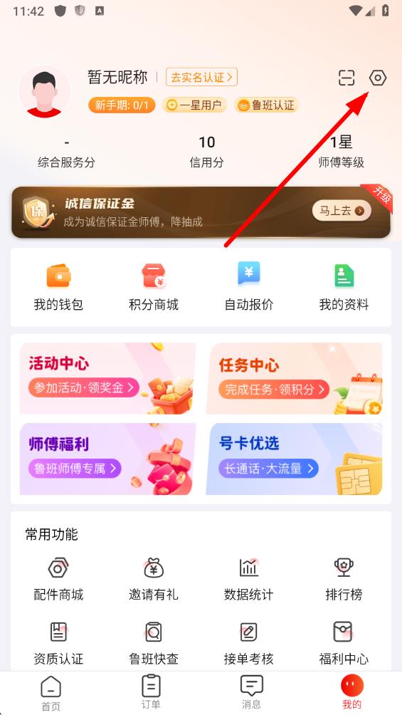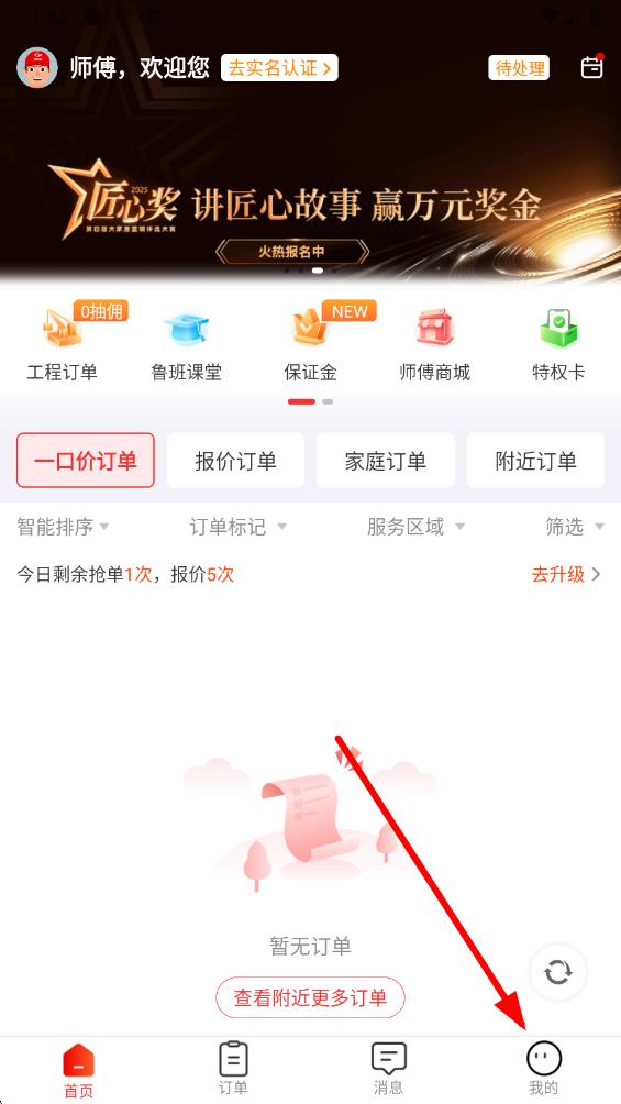 1、打開魯班到家?guī)煾蛋孳浖?,點擊底部導(dǎo)航欄中我的圖標進入個人相關(guān)界面。