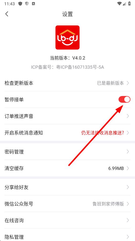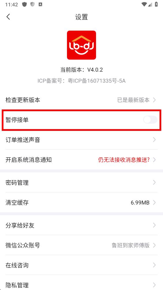 3、在設(shè)置頁面中,找到暫停接單功能選項。