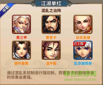 該陣容通過黃三甲和曹官子的強力控制,能對敵方造成強有力的打擊。同時曹官子的群體buff效果也能小幅度提升團隊的持續(xù)作戰(zhàn)能力,是pk較強的陣容。