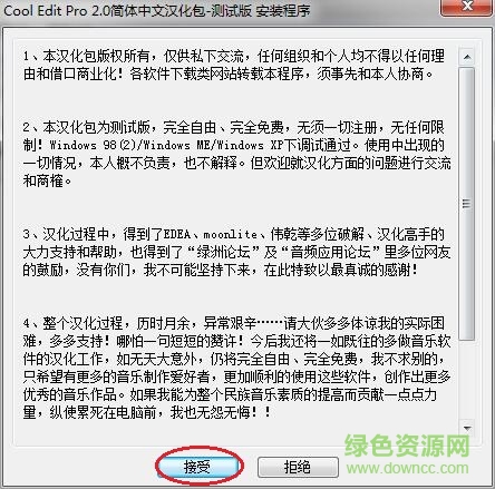 14.最后我們來漢化,打開“Cool2chinese.exe”文件,點(diǎn)擊“接受”按鈕