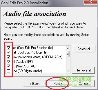 4.選擇關(guān)聯(lián)的音頻文件格式,勾選后點(diǎn)擊“next”