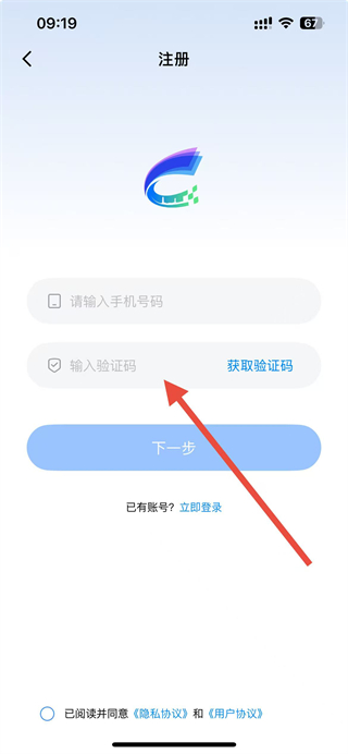 4、在注冊頁面輸入手機號碼,獲取驗證碼,勾選同意協(xié)議,點擊下一步按鈕,即可完成溫州市民卡賬號注冊。
