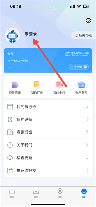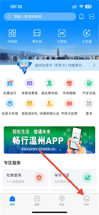 1、在溫州市民卡app首頁點擊我的選項,進(jìn)入個人頁面。