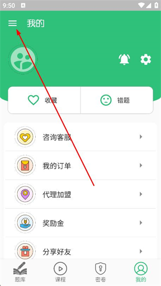 2、在我的頁(yè)面中,點(diǎn)擊左上角的三條橫線菜單圖標(biāo)。