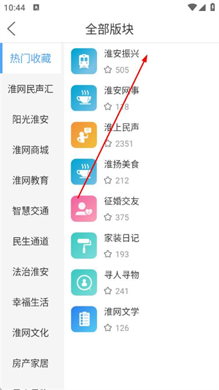 1、打開(kāi)淮水安瀾APP,點(diǎn)擊首頁(yè)的全部版塊選項(xiàng),進(jìn)入版塊選擇頁(yè)面。