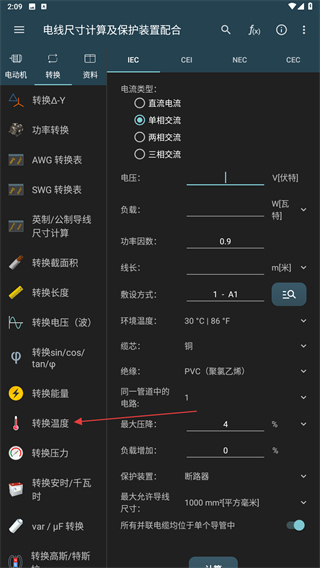 電氣計(jì)算器是非常實(shí)用的辦公協(xié)助計(jì)算器軟件。電氣計(jì)算軟件能夠幫你快速計(jì)算各電氣數(shù)據(jù),比如電流、電阻等數(shù)據(jù)。有了電氣計(jì)算app,再也不用為計(jì)算這些數(shù)據(jù)而頭疼了!