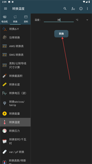 2、在轉(zhuǎn)換的頁面內(nèi),點(diǎn)擊轉(zhuǎn)換溫度的按鈕。