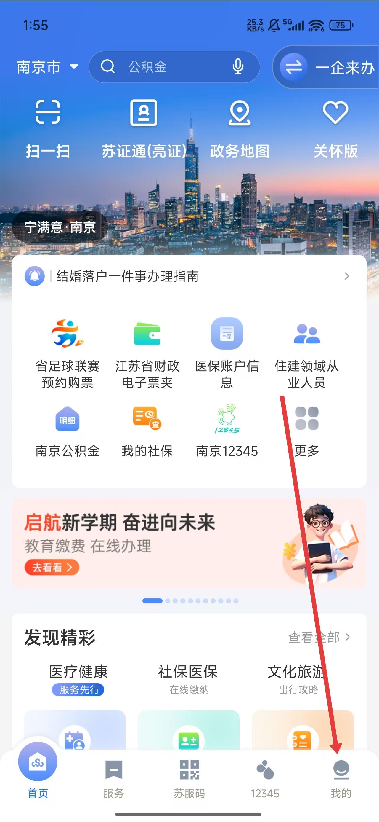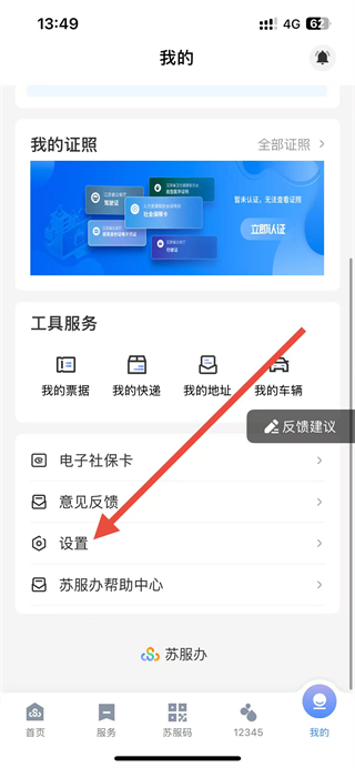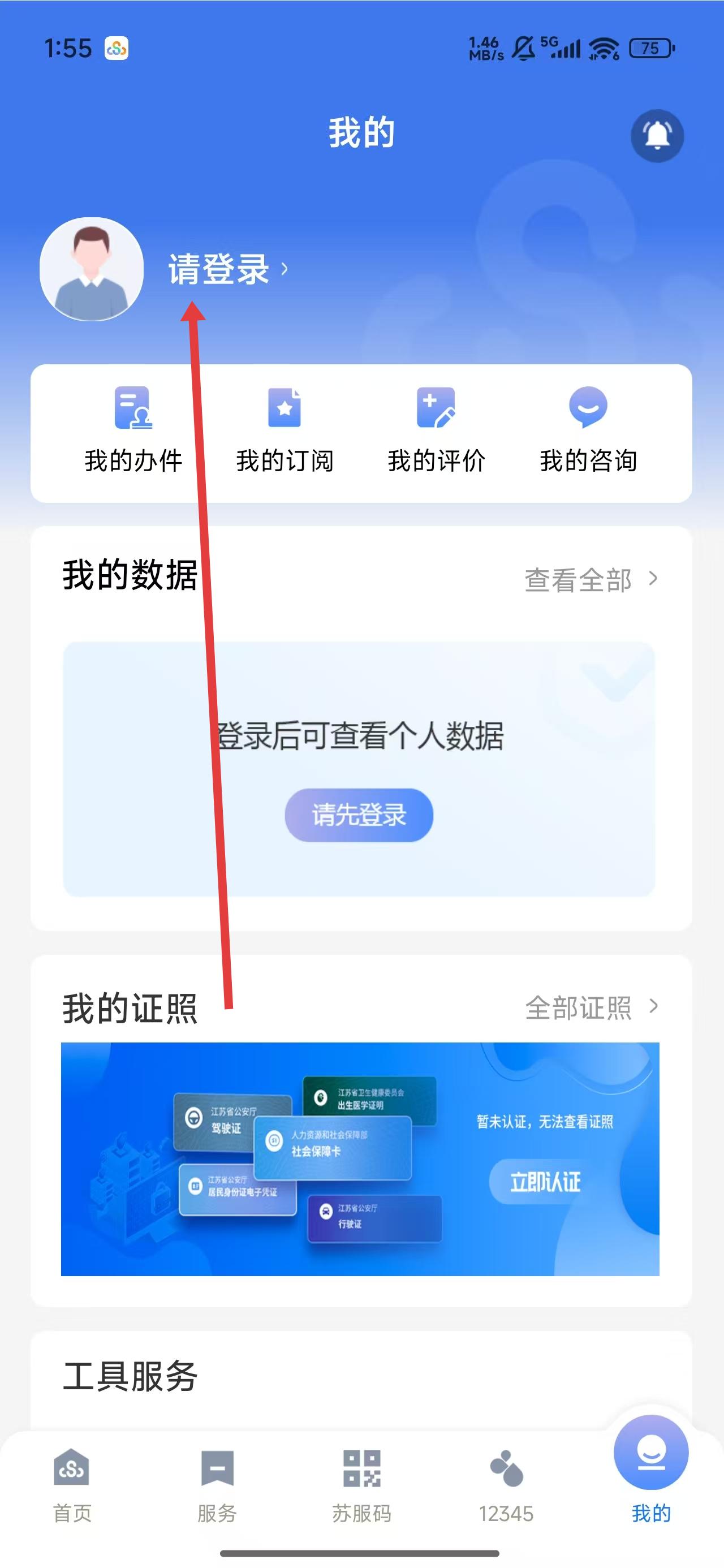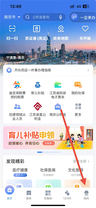 1、在蘇服辦app首頁點(diǎn)擊我的選項(xiàng),進(jìn)入個(gè)人頁面。