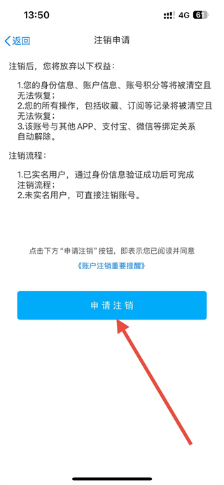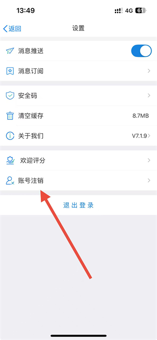 3、在設(shè)置頁面點(diǎn)擊賬號(hào)注銷選項(xiàng),進(jìn)入注銷申請(qǐng)頁面。