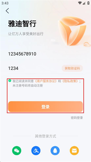4、勾選同意用戶協(xié)議隱私政策點擊登錄按鈕,完成登錄操作。
