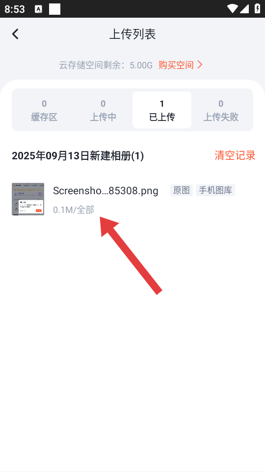 4、上傳完成后,在上傳列表頁面的已上傳標簽下,可查看成功上傳的照片記錄。