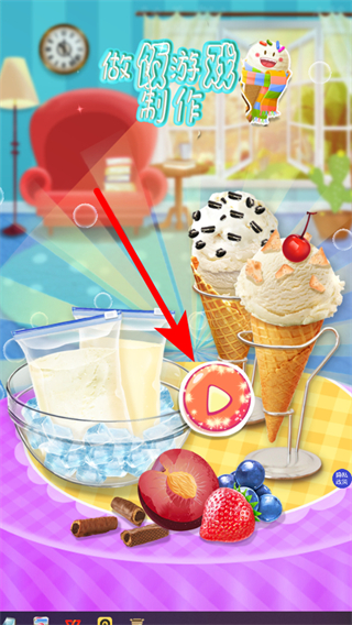 1、進(jìn)入游戲界面后,點(diǎn)擊播放按鈕開(kāi)啟史萊姆冰淇淋制作冒險(xiǎn),這是進(jìn)入游戲的關(guān)鍵操作,準(zhǔn)確點(diǎn)擊才能解鎖材料添加等制作環(huán)節(jié)。