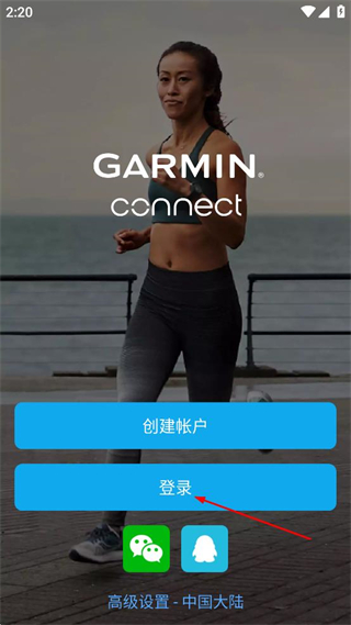 2、進(jìn)入GarminConnect主頁面,找到登錄選項并點擊,進(jìn)入登入中國大陸頁面。