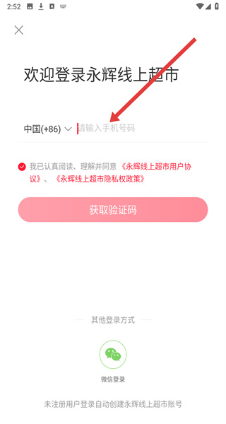 3、在進(jìn)入到登錄頁面中,可以點(diǎn)擊輸入框填寫手機(jī)號(hào)碼,以便獲取驗(yàn)證碼進(jìn)行登錄。