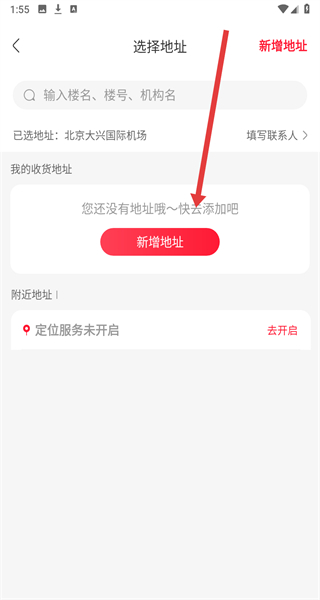 3、在選擇地址頁面里,可以點(diǎn)擊新增地址按鈕,準(zhǔn)備進(jìn)行添加地址操作。