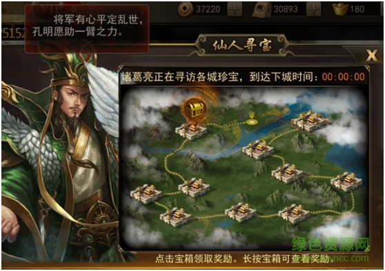 到達(dá)下城時(shí)間為0時(shí),表明諸葛先生已經(jīng)到達(dá)該城,點(diǎn)擊寶箱圖標(biāo)就可以領(lǐng)取獎(jiǎng)勵(lì)了哦——