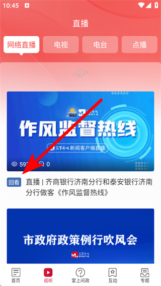 2、在視聽頁面的直播板塊中,點(diǎn)擊帶有回看標(biāo)識(shí)的直播內(nèi)容。