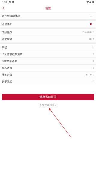 3、進(jìn)入設(shè)置的頁面內(nèi),點(diǎn)擊下方永久注銷賬號(hào)的按鈕。