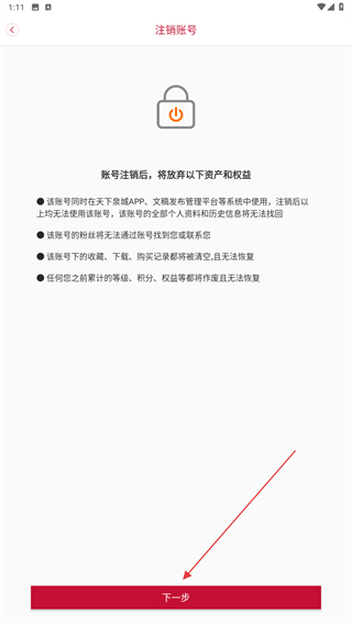 4、進(jìn)入該頁面內(nèi),了解后點(diǎn)擊下方下一步的按鈕即可完成。