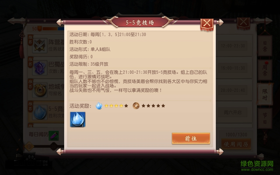 玩家到達35級后可進入5-5競技場。5-5競技場每周一、三、五晚21:00-21:30開放,玩家單人或組隊進入均可,體驗團隊合作PVP的樂趣。若單人或組隊人數(shù)不夠時,競技場美眉會為玩家匹配各區(qū)中實力相當(dāng)?shù)钠渌婕乙黄鸾M隊進入戰(zhàn)場。不論戰(zhàn)斗成敗,玩家均能獲得大量經(jīng)驗獎勵。