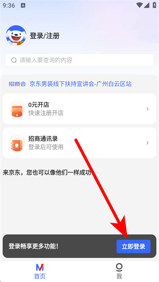 1、打開京麥APP,點擊右下角立即登錄,進(jìn)入登錄選擇頁面。