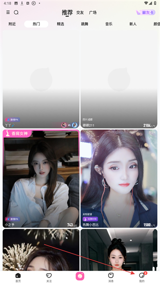 1、啟動(dòng)花椒直播APP,進(jìn)入時(shí)點(diǎn)擊下方的圖標(biāo)。