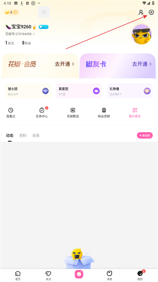 2、進(jìn)入我的頁面內(nèi),點(diǎn)擊右上齒輪狀的功能圖標(biāo)。
