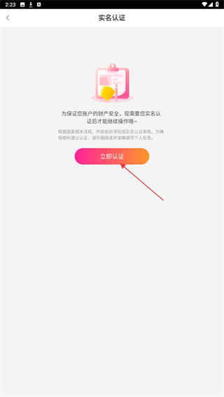 2、進(jìn)入實(shí)名認(rèn)證的頁面內(nèi),點(diǎn)擊立即認(rèn)證的按鈕。