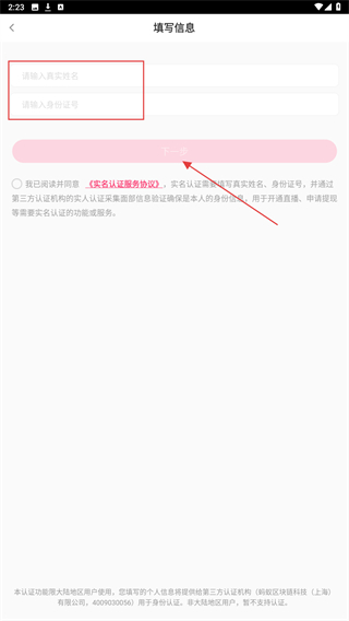 3、輸入真是姓名、身份證號(hào),再點(diǎn)擊下一步即可。