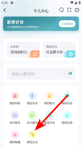 2、在個人中心的頁面,點(diǎn)擊瀏覽記錄,進(jìn)入瀏覽記錄的頁面。