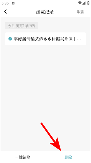 4、選擇要刪除的瀏覽記錄后,點(diǎn)擊刪除,完成瀏覽記錄刪除操作。