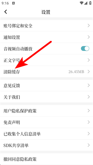 3、在設(shè)置的頁面,我們需要找到清除緩存選項并點(diǎn)擊。