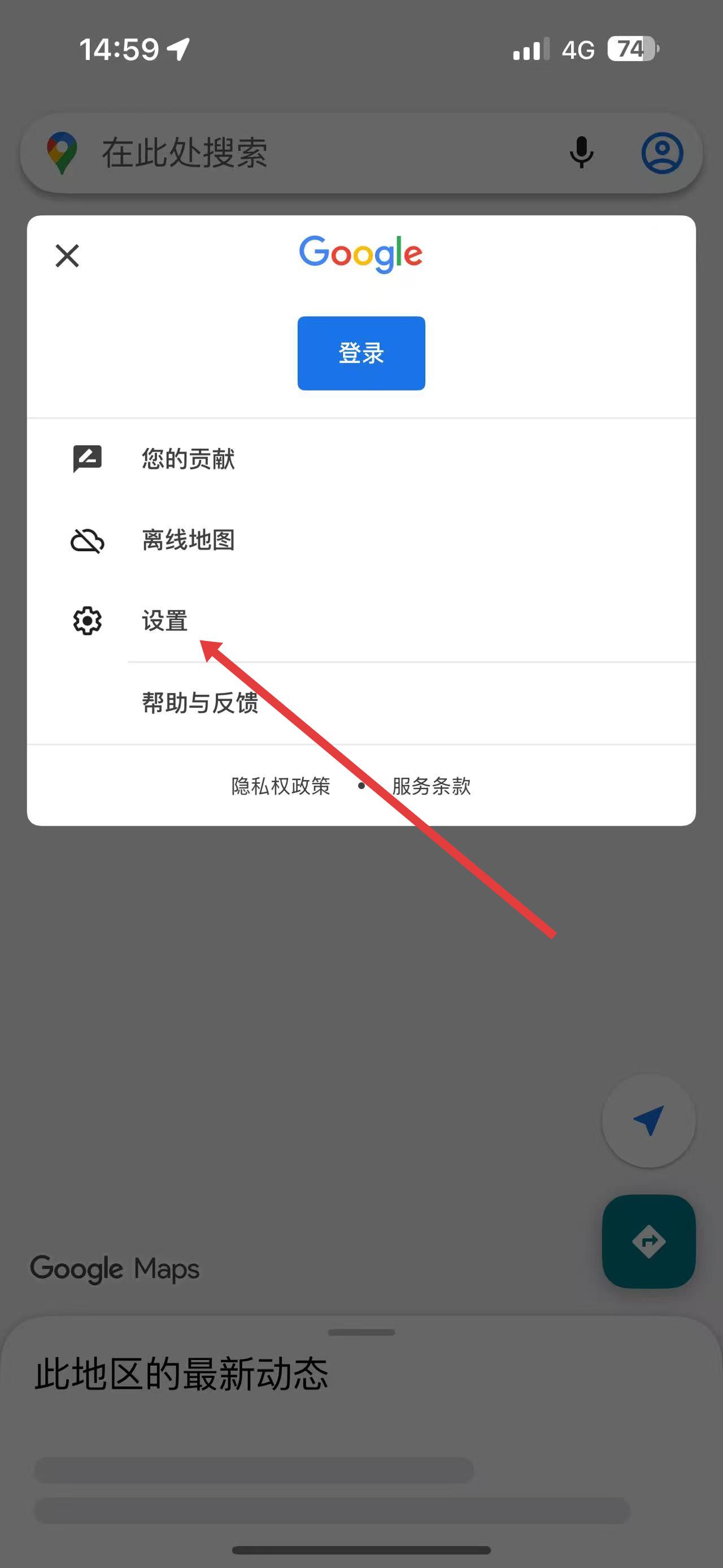1、打開谷歌地圖應(yīng)用,點(diǎn)擊界面中的設(shè)置選項(xiàng),進(jìn)入設(shè)置頁面。