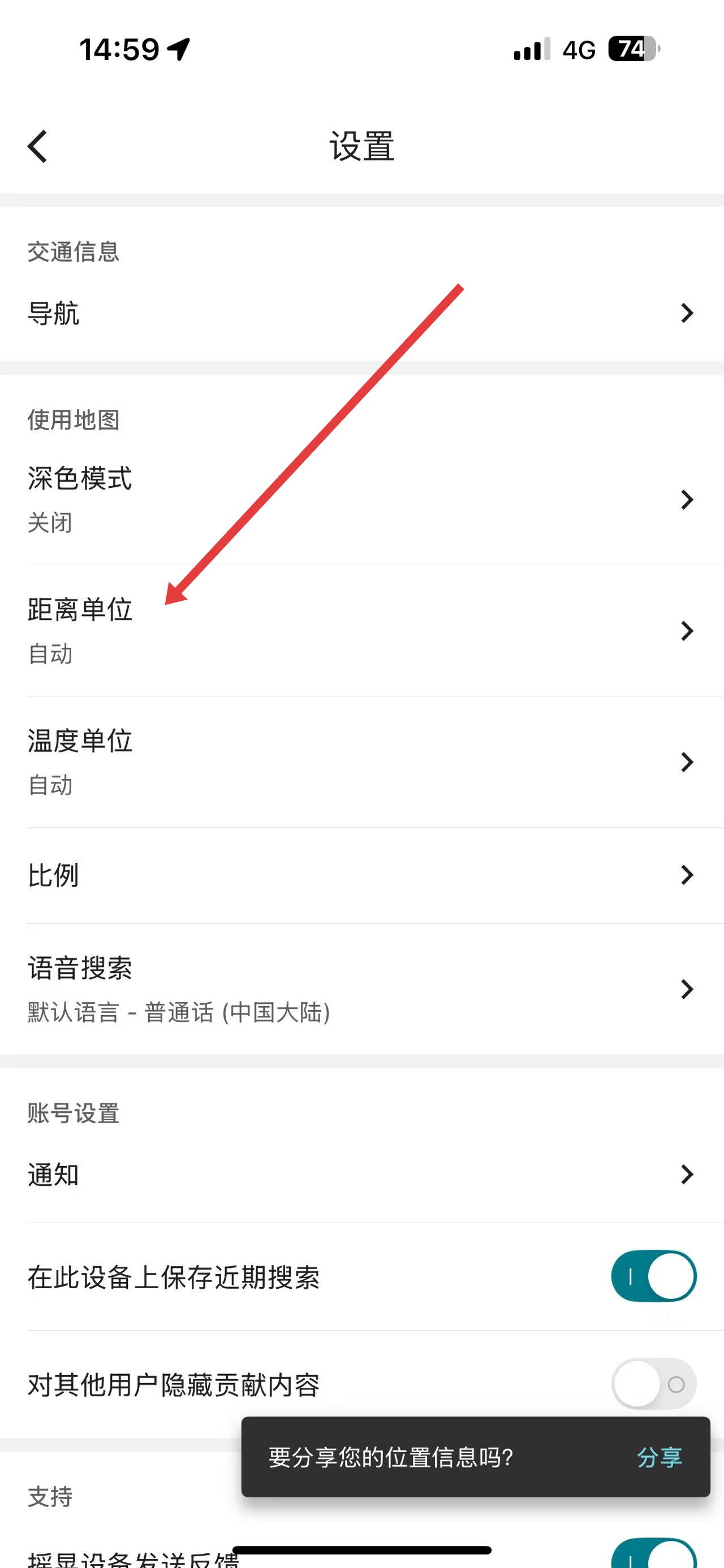 2、在設(shè)置頁面里,找到并點(diǎn)擊距離單位選項(xiàng),進(jìn)入距離單位設(shè)置界面。