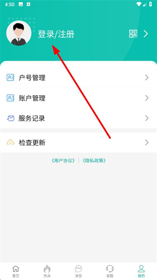 2、在個(gè)人頁(yè)面中,點(diǎn)擊登錄注冊(cè)選項(xiàng)進(jìn)入登錄頁(yè)面。