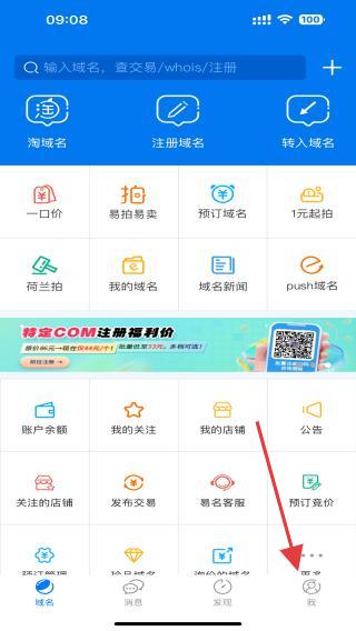 1、打開(kāi)域名APP,在首頁(yè)內(nèi)點(diǎn)擊右下角我的圖標(biāo)。