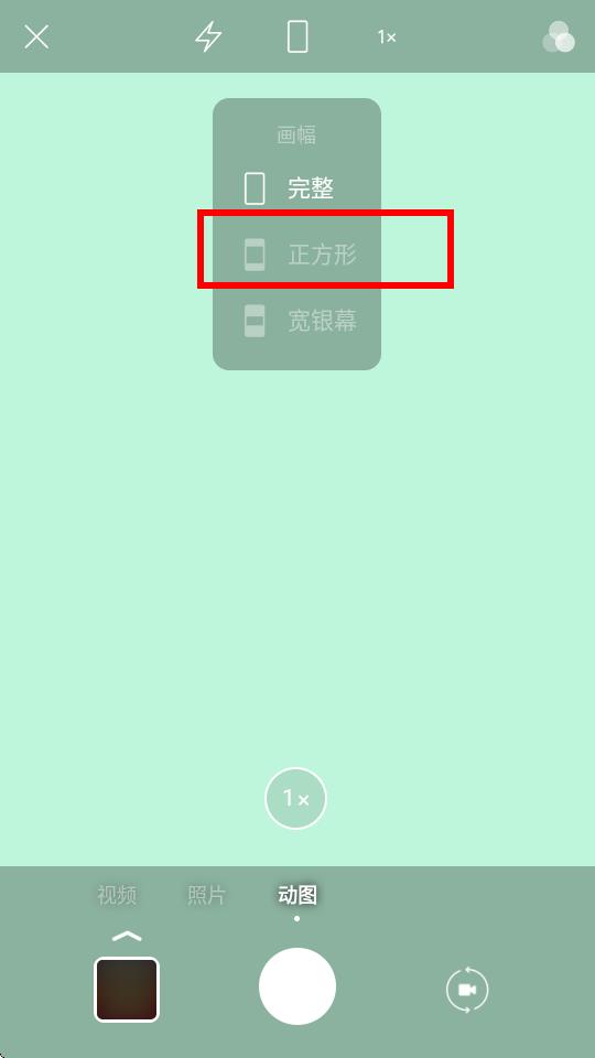 3、在彈出的畫幅選項(xiàng)中,點(diǎn)擊選擇正方形選項(xiàng)。