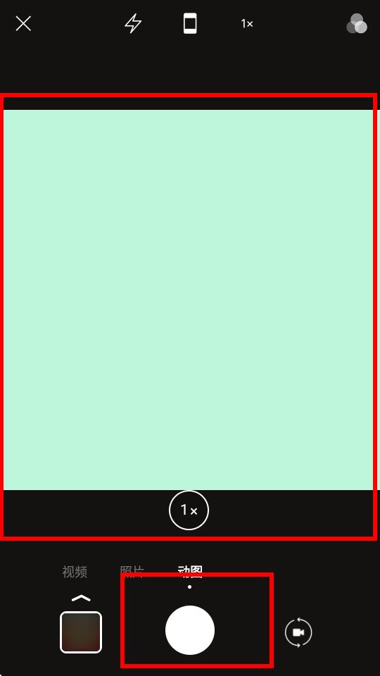 4、此時(shí)拍攝框變?yōu)檎叫螛邮?,點(diǎn)擊下方的拍攝按鈕就可以進(jìn)行正方形模式拍照了。
